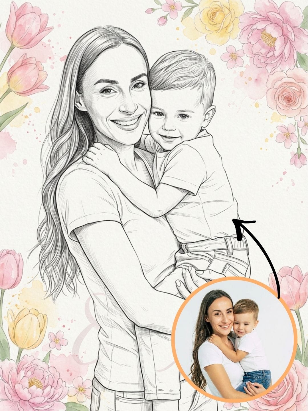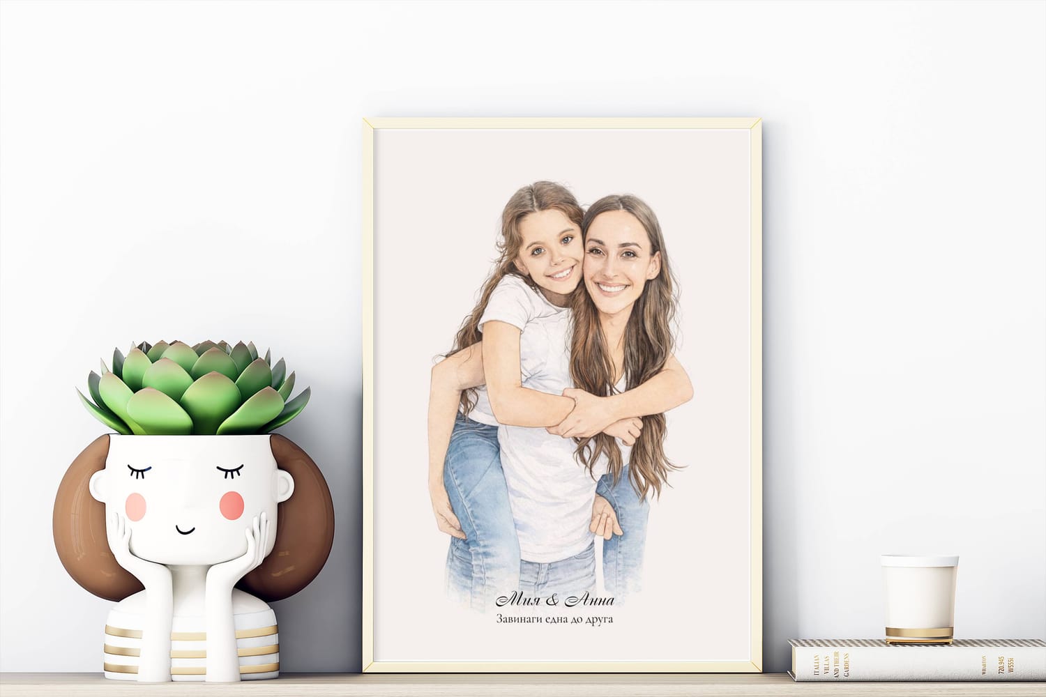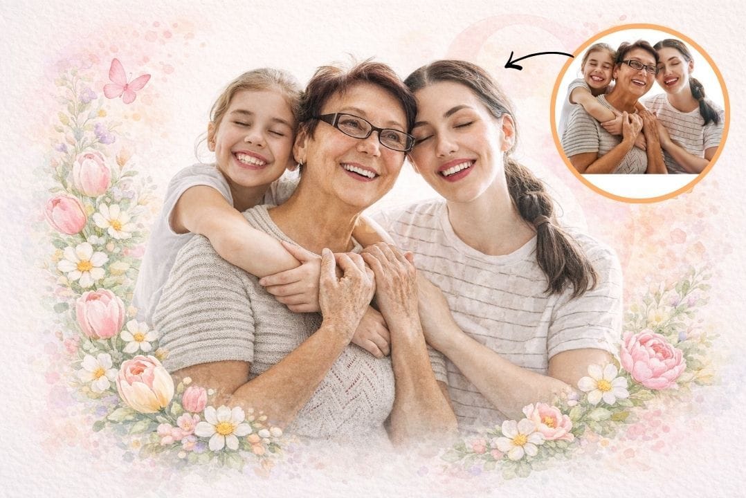 Емоционални семейни портрети: Трансформиране на снимки на майки, дъщери и баби в нежни акварели.
