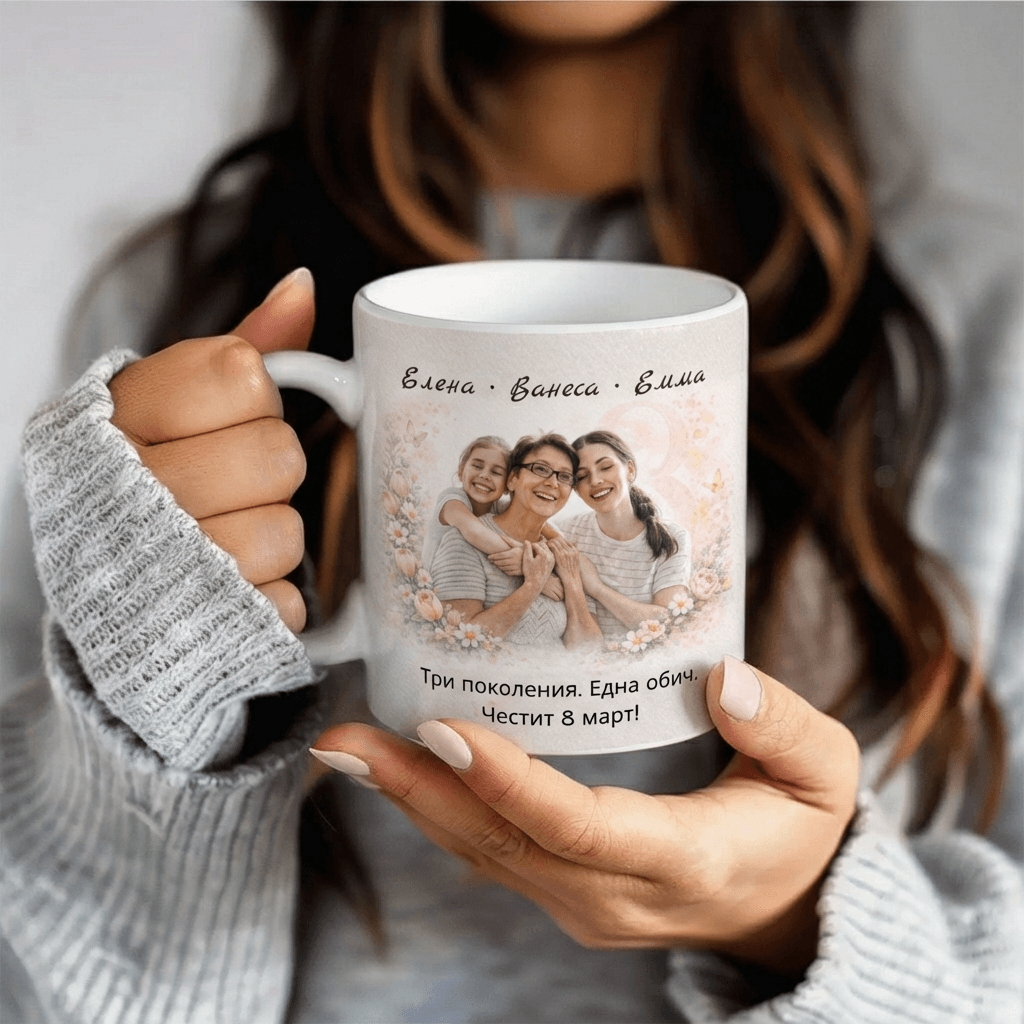 🌸 8-ми март: Изненадайте най-специалните жени с нежен портрет върху канава, възглавница или чаша, които казват „Обичам те“ по уникален начин.