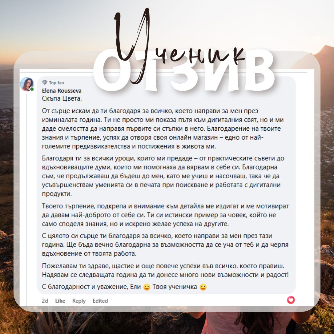 който ѝ помогна да разбере как лесно да предлага уникални